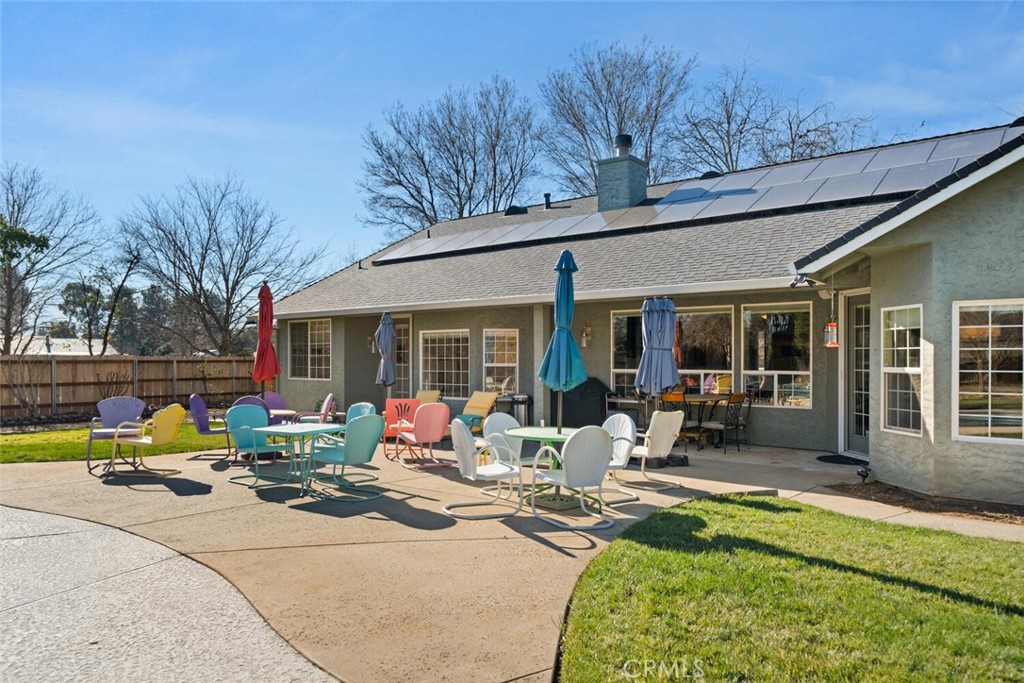 Come see this beautiful North Chico home located in the Autumn Park subdivision! As you drive up, you'll notice the well manicured yard with mature landscape and the timeless charming front porch. When entering the home, you're immediately drawn to the light and bright living room that has lots of windows for natural light, white built-in cabinetry, a wood burning fireplace, crown moulding, and tall ceilings. The kitchen around the corner has been updated with granite counters, new light fixtures, cork flooring, and stainless steal appliances. There is a spacious walk-in pantry close to the dining room for any dinner items you may have forgotten! There is a lovely sitting room off the dining with French doors that is perfect for the after dinner coffee or wine. Leading down the hallway, you'll find two spacious bedrooms and a bathroom, as well as the master suite. The master has a vaulted ceiling, walk-in closet, en suite bathroom with a large tub, dual sink vanity, and second closet. On the other side of the home, there is the fourth bedroom, guest bathroom, and the laundry room. In the backyard, you'll fall in love with the sparkling pool and large patio that is perfect for upcoming summer entertaining. There are several producing fruit trees and plenty of space for outdoor activities! Other notable features include an OWNED 13.87 kW solar system, new glass roll-up garage doors, epoxy garage floor, a ductless mini split in the garage, a new pressure tank for the well, and a custom gate with RV parking potential. This property has so much to offer and is ready for you to call home!